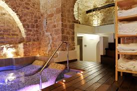 Pavimento a mosaico perfettamente conservato, sorretto da pilastri in mattoni. Sistema di riscaldamento avanzato: aria calda sotto il pavimento e nelle pareti tramite tubuli. Probabile funzione di laconicum (sauna romana). Tracce di affreschi ancora visibili sulle pareti interne.